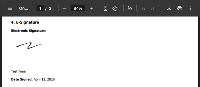 Capturing a signature on a form is simple, but rendering it reliably onto a PDF requires robust logic. The development team implemented a “fallback iteration” method to ensure signatures appeared correctly regardless of the specific add-on used.