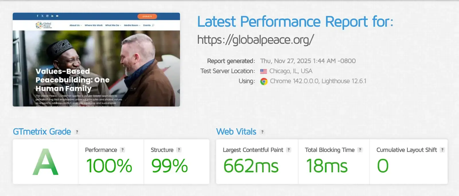 By migrating to a managed infrastructure and resolving underlying technical conflicts, Global Peace Foundation achieved immediate and measurable improvements in both site performance and team efficiency.